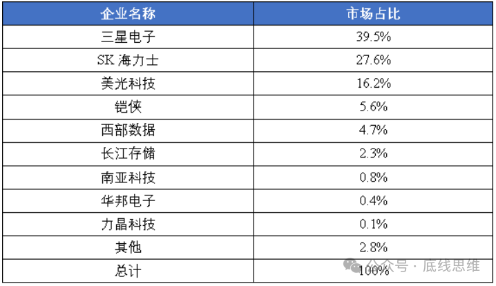 2024年全球存储器厂商市场份额,世界集成电路协会(WICA)数据