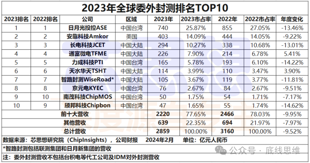 芯片封装与测试技术相对简单,前十基本都是中国大陆与中国台湾企业,前十之后也有22%的市场份额,东南亚多国都有不少封测企业。业界近年来先进封装需求较为强烈,芯片的连接方式有重大变化,但技术难度高的需要由台积电等晶圆代工厂来做。