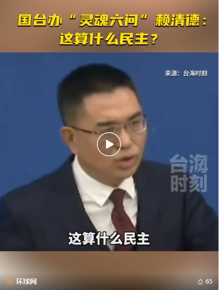 发言人陈斌华表示,赖清德继续鼓吹“互不隶属”的“新两国论”,宣扬分裂主张,煽动两岸敌意对抗;编造所谓“民主对抗威权”虚假叙事,企图蛊惑岛内民众,误导国际舆论,再次暴露其冥顽不化的“台独”本性和升高两岸对立对抗的险恶用心,暴露其向外部势力献媚输诚的丑态和“倚外谋独”“以武谋独”的企图。这种伎俩欺骗不了人,也绝对不会得逞。