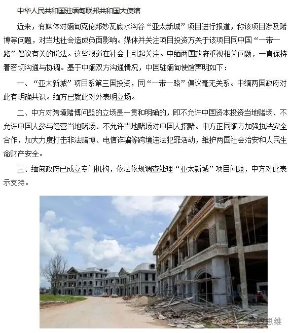 中国驻缅甸大使馆针对“亚太新城”发表声明 缅华网