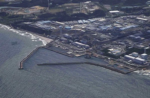 当地时间2023年8月24日,日本福岛县,航拍东京电力控股公司福岛第一核电站。东京电力公司宣布,已于当天下午1点开始排海。图源:视觉中国