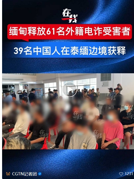 据悉,缅甸方面当天在泰缅边境将61名被解救的缅甸妙瓦底电诈园区受害者移交给泰国当局。此次被解救的人员中包括39名中国人、13名印度人、1名哈萨克斯坦人、5名印度尼西亚人、1名埃塞俄比亚人、1名巴基斯坦人和1名马来西亚人。
