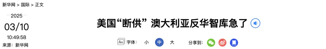 澳大利亚战略政策研究所近日在接受《华尔街日报》采访时也证实,“美国暂停资助已导致该研究所停止了与中国相关的研究和数据项目,这些项目价值约120万美元,重点关注网络安全和技术问题”。