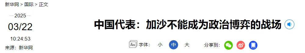 中国代表:加沙不能成为政治博弈的战场