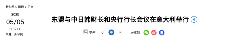 2025年5月4日,第28届东盟与中日韩(10+3)财长和央行行长会议在意大利米兰举行。图源:财政部网站