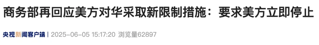 商务部再回应美方对华采取新限制措施:要求美方立即停止6月5日下午,商务部召开例行新闻发布会,有记者就美方对华采取新限制措施进行提问……