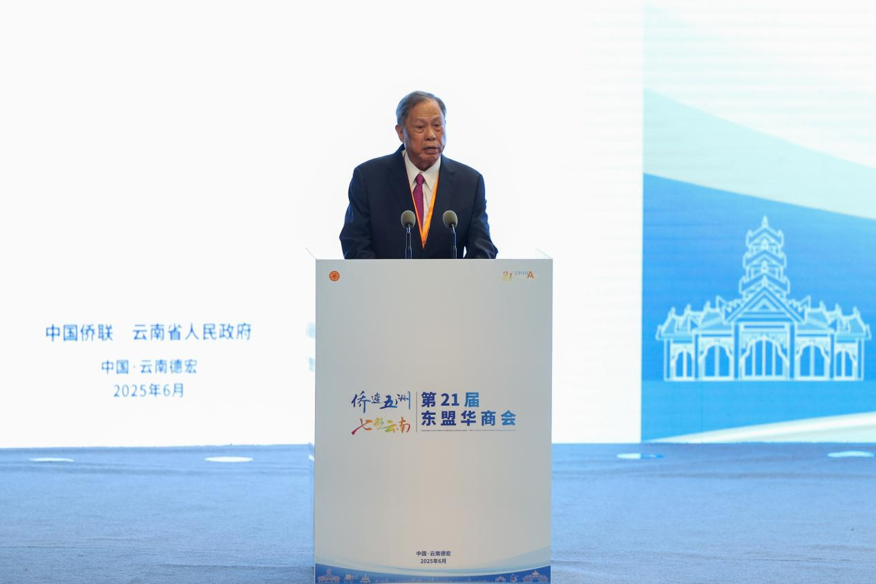 6月14日上午,由中国侨联和云南省人民政府共同主办,云南省侨联、中共德宏州委、德宏州人民政府、云南省商务厅、云南省侨办、致公党云南省委会、云南省投资促进局承办的“侨连五洲·七彩云南——第21届东盟华商会”在德宏隆重开幕。中国侨联党组成员、副主席候选人高峰出席开幕式并致辞,云南省副省长徐浩,中国侨联副主席(兼职)、世界福州十邑同乡总会总会长吴换炎,缅甸中华总商会会长、福兴兄弟集团公司董事长林文猛等出席活动并发表致辞。德宏州委书记,瑞丽国家重点开发开放试验区党工委书记、管委会主任姜山主持会议。来自德国、泰国、缅甸、香港、澳门等62个国家和地区的400多名侨领侨商到场参会。