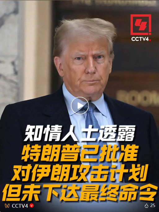 央视记者此前获悉,三位知情人士称,美国总统特朗普在6月17日晚已告诉他的高级助手,称他已批准了对伊朗的攻击计划,但暂不下达最终命令,以观察伊朗是否会放弃其核计划。