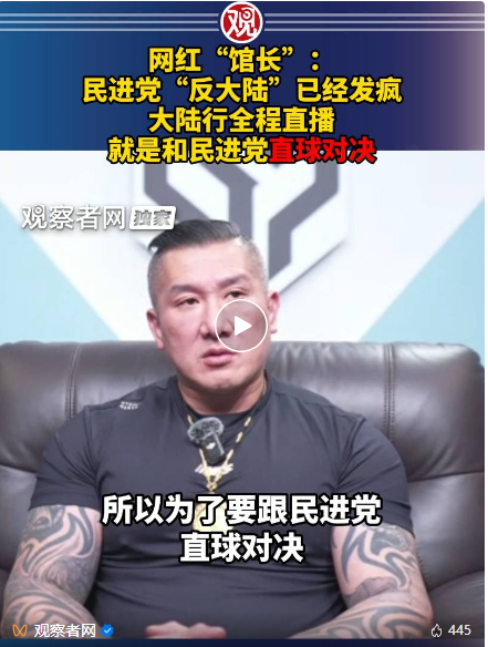 高志凯:现在短视频在大陆非常火,馆长大陆行的直播经常被做成短的视频切片来转播。大陆网友最感兴趣是“台独”分子居然说自己不是中国人?!那他是什么人啊?难道他是美国人吗?难道他是日本人吗?我觉得这一点是大陆网友特别感兴趣的,有很多调侃、挖苦。