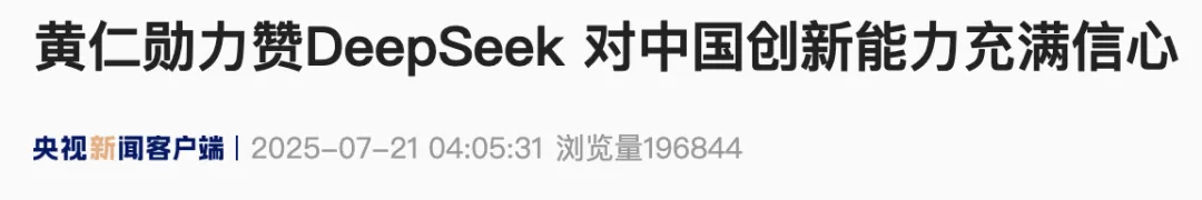 黄仁勋力赞DeepSeek 对中国创新能力充满信心