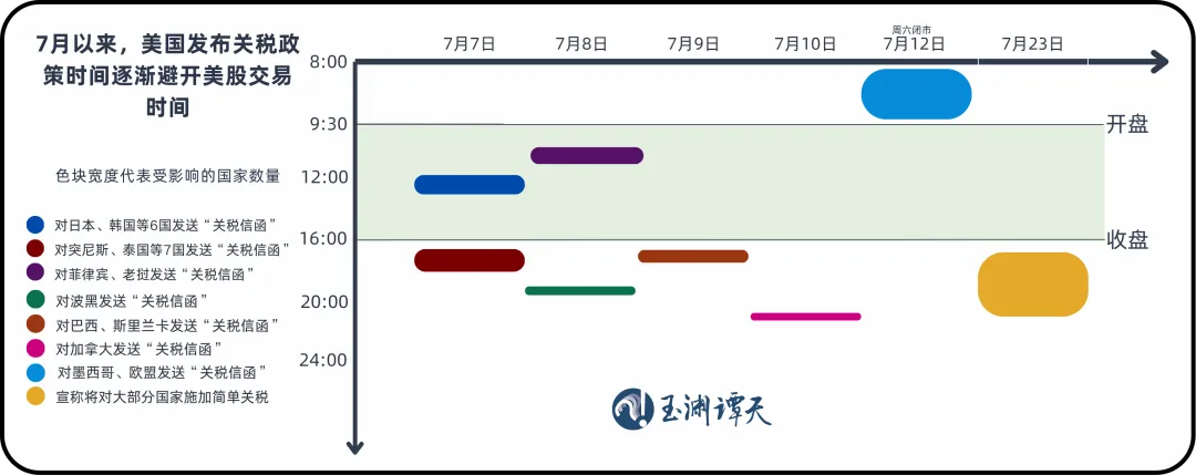 或许也正是因为关税政策对美国自身的冲击要更大,美国政府在前两日公布关税信函之后,后面再发布关税相关政策时,都刻意避开了美股的交易时间段。