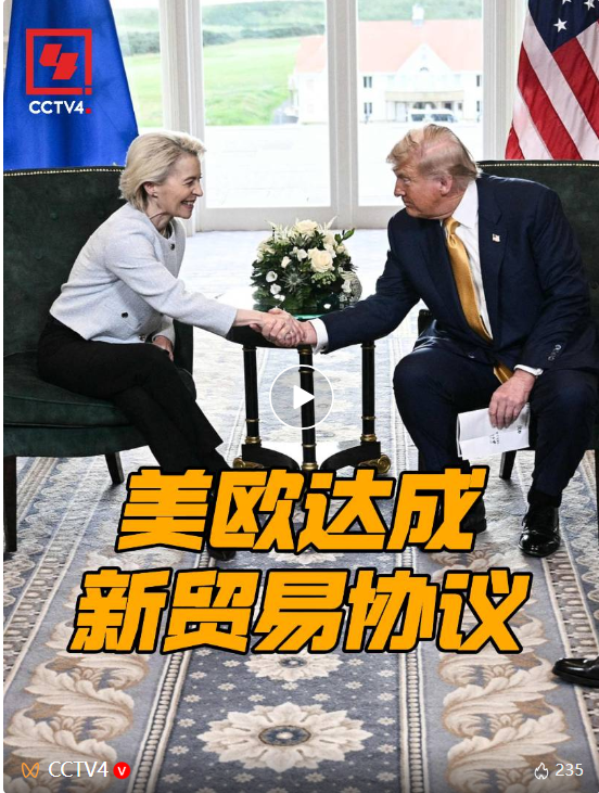 此次会晤和达成协议是在距离美方设定的8月1日关税生效期限所剩数日之际的临门一脚。表面上看,这是一场对等的高层磋商,实则却凸显出欧盟在美方持续施压下的步步退让与被动妥协。