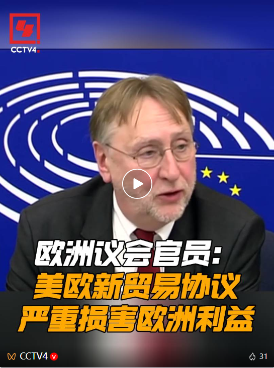 美欧27日宣布达成新贸易协议,尽管欧盟委员会主席冯德莱恩强调该协议能够带来稳定和可预见性,但欧洲议会国际贸易委员会主席贝恩德·朗格表示强烈不满,称这一协议不符合欧洲的根本利益。