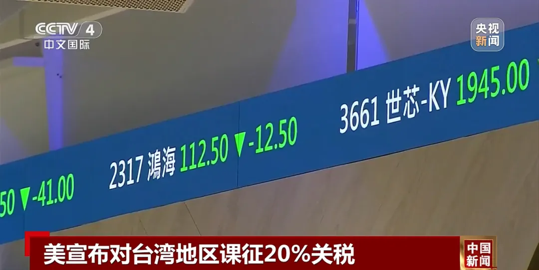 当地时间7月31日,美国确定了对多个贸易伙伴的所谓“对等关税”税率,其中将对台湾地区征收的新关税税率为20%,虽然低于4月公布的32%,但高于台湾主要竞争对手日本和韩国的15%。考虑到民进党当局声称此前已经与美方进行多轮正式协商,这样的税率,让岛内各界倍感失望,台股1日开盘一度大跌224点。