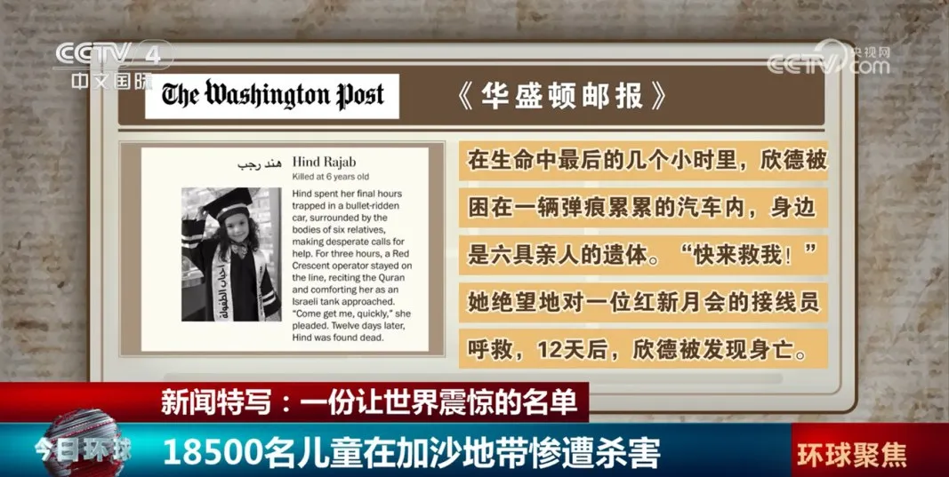 《华盛顿邮报》用一句话介绍了这些巴勒斯坦儿童被杀的骇人频率:自2023年10月以来,每1个小时,都有超过1名儿童遇害。