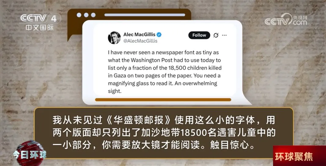 美国《华盛顿邮报》近日在报纸及官网上,公布了一份让世界震惊,异常沉重的名单。这是自2023年10月以来,在加沙地带惨遭杀害的18500名儿童的名字,其中超过900名还不到1岁。