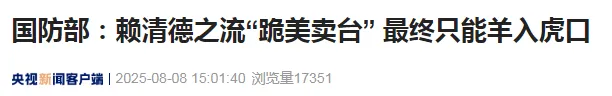 国防部:赖清德之流“跪美卖台”,最终只能羊入虎口