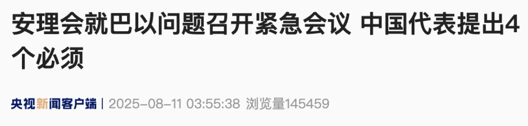 文章导读 安理会就巴以问题召开紧急会议,中国代表提出4个必须因以色列安全内阁批准“以军接管加沙地带北部加沙城”的计划,当地时间8月10日上午,联合国安理会召开巴以问题紧急公开会……