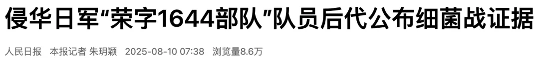 侵华日军“荣字1644部队”队员后代公布细菌战证据