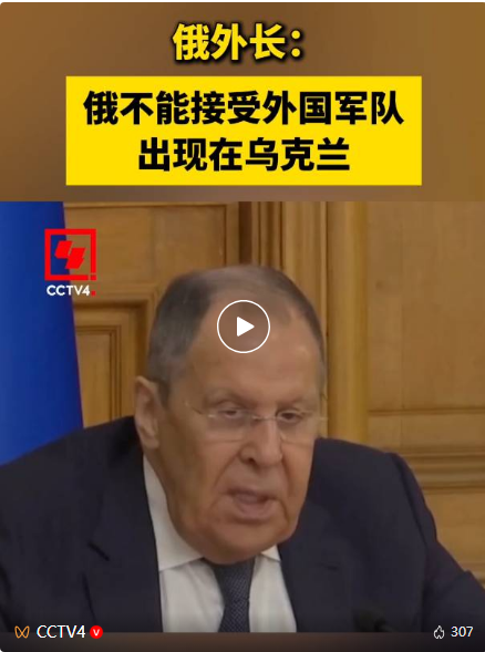 关于乌克兰安全保障相关话题,拉夫罗夫表示,以集体形式向乌克兰提供安全保障的原则仍然适用,但前提条件是乌克兰保持不结盟和中立地位。拉夫罗夫表示,欧洲方面将俄罗斯排除在乌克兰安全保障机制之外的想法是不可接受的。俄方支持2022年在伊斯坦布尔达成的安全保障原则,其他所有方案都是徒劳的。