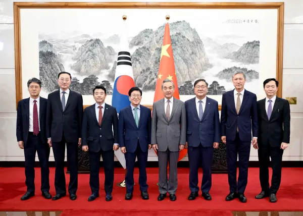王毅表示,今年是中国人民抗日战争暨世界反法西斯战争胜利80周年,也是朝鲜半岛光复80周年。中方将隆重举行“9·3”纪念活动。在这个重要特殊节点,中方愿同所有爱好和平的国家和人民一道,铭记历史、缅怀先烈、珍爱和平、开创未来,共同捍卫二战胜利成果和国际公平正义。中韩还应携手维护国际自由贸易体系,共同反对贸易保护主义,要践行多边主义理念,加强在联合国等框架内的沟通协调,有效应对地区乃至全球性挑战。