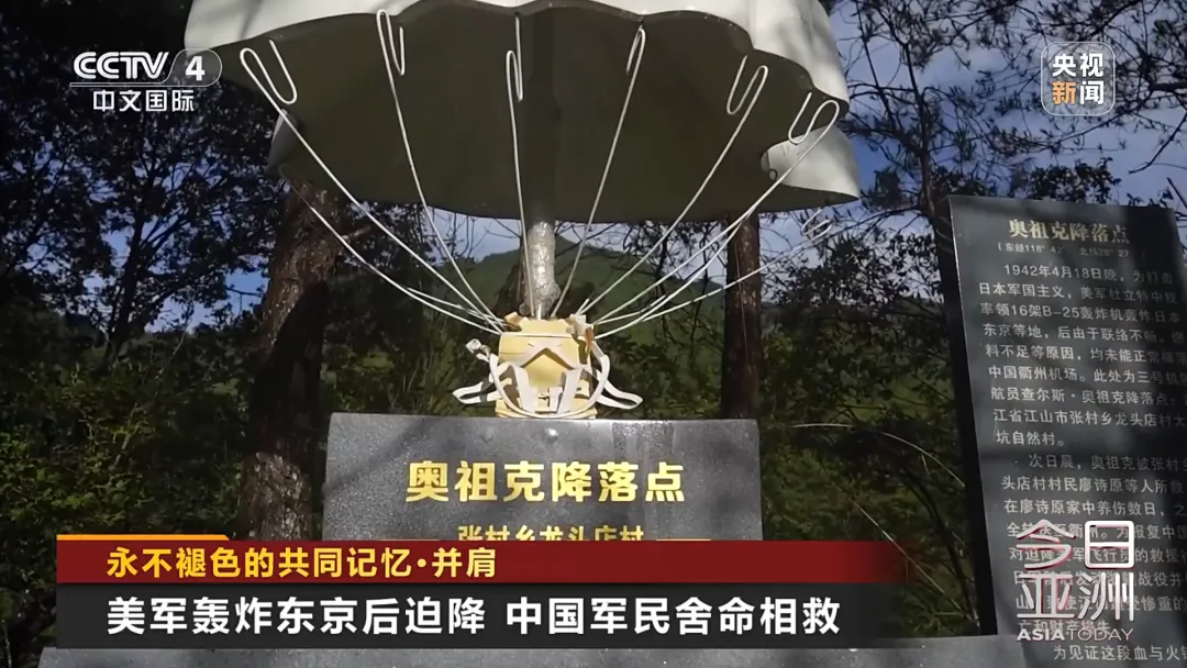 在距离衢州市区近百公里开外的江山市龙头店村,矗立着一块纪念碑,这里正是1942年4月18日“杜立特行动”当中,3号机组领航员查尔斯·奥祖克跳伞的降落地。