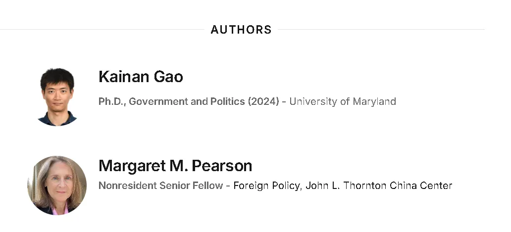 这篇文章由美国马里兰大学的政治学教授玛格丽特·皮尔逊(Margaret M. Pearson)以及该校的政治学博士高凯南(音译,Kainan Gao)共同撰写的。
