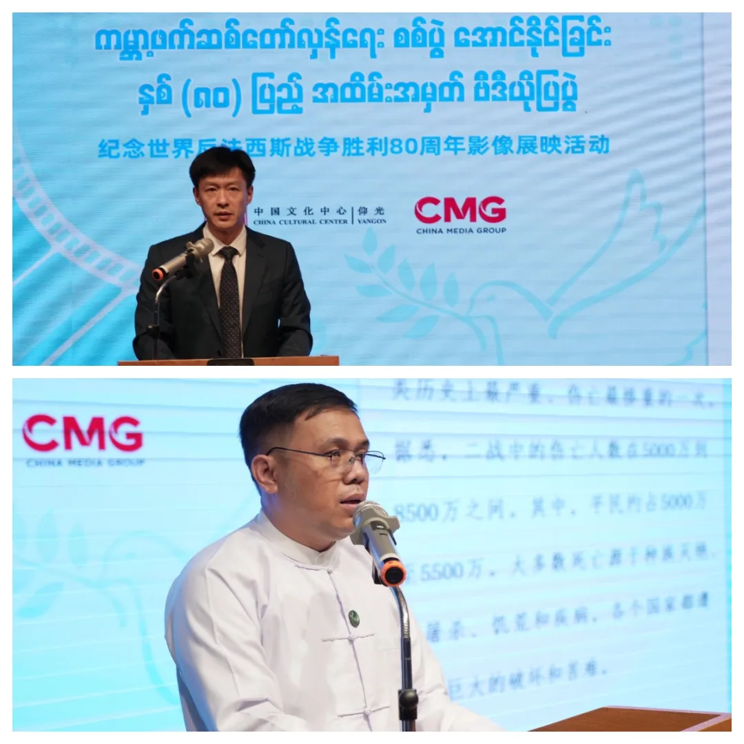 8月30日,驻缅甸使馆郑志宏公参出席“回顾历史 展望和平”纪念世界反法西斯战争胜利80周年影像展映活动启动仪式。缅宣传部媒体发展司泽雅副司长、中缅媒体、华文学校师生代表等近百人参加……
