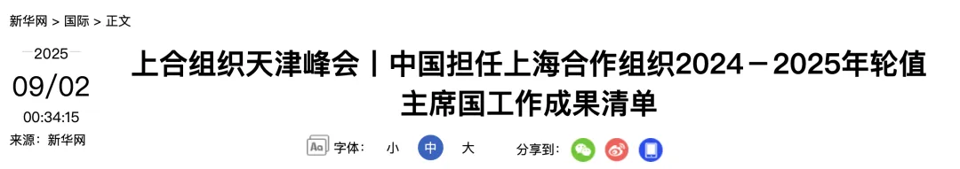 中国担任上海合作组织2024-2025年轮值主席国工作成果清单
