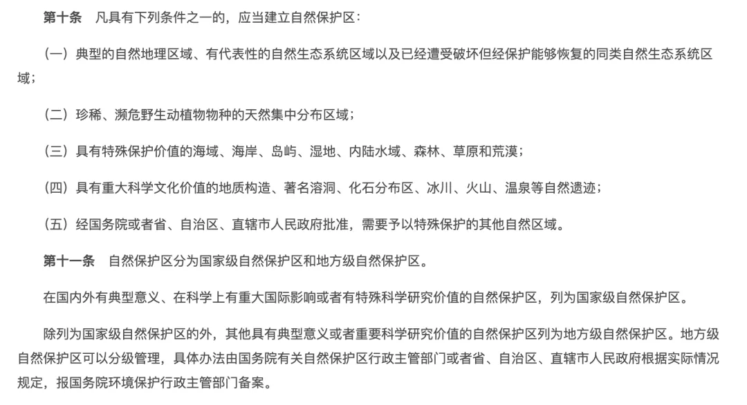 ||《中华人民共和国自然保护区条例》中关于自然保护区的部分规定。