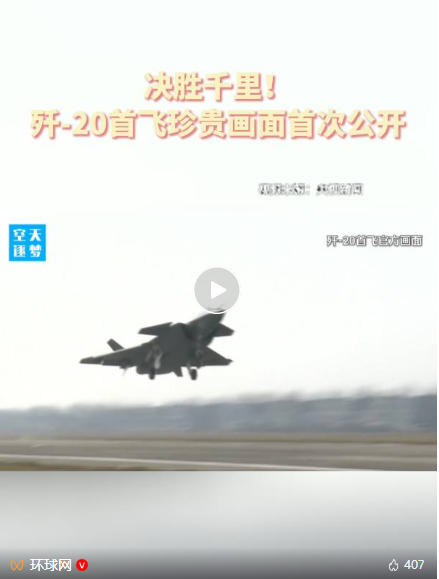 歼-20首飞官方画面首度公开