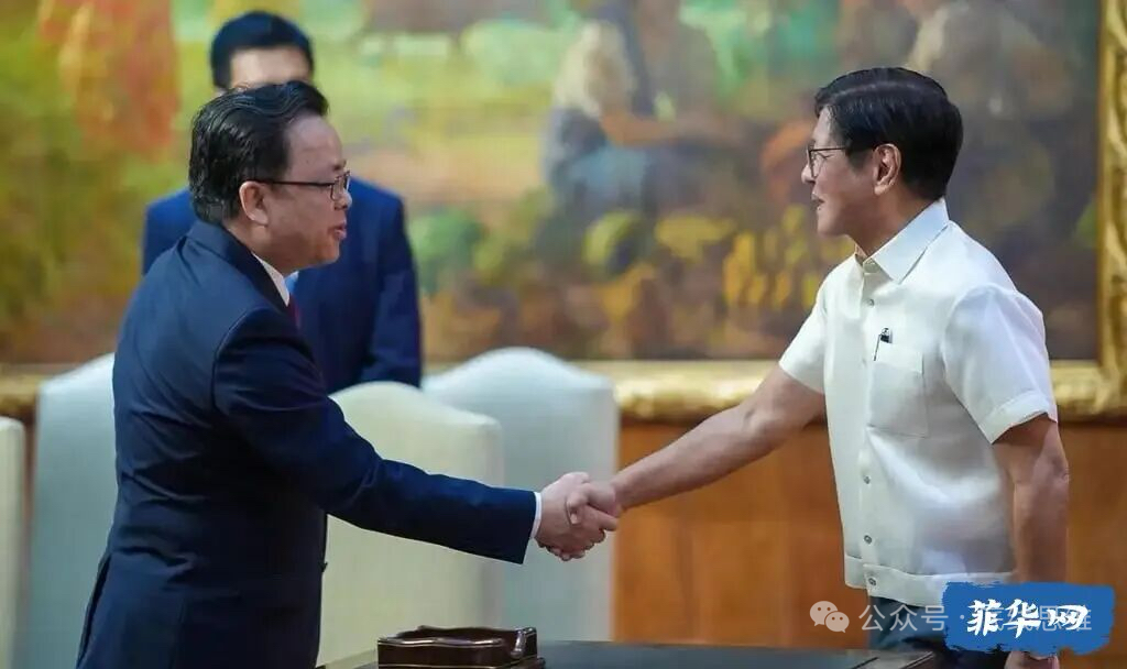 9月25日,菲律宾总统小马科斯(右)与即将离任的中国驻菲大使黄溪连举行会晤。 图源:菲华网