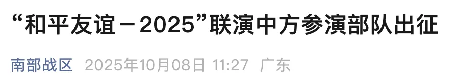 根据年度军事合作计划,10月15日至23日,中马两军将在马来西亚及其附近海域举行“和平友谊—2025”联合演习……