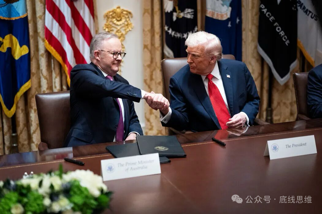特朗普总统与安东尼·阿尔巴尼斯总理签署关键矿产协议后握手。 图源:《纽约时报》