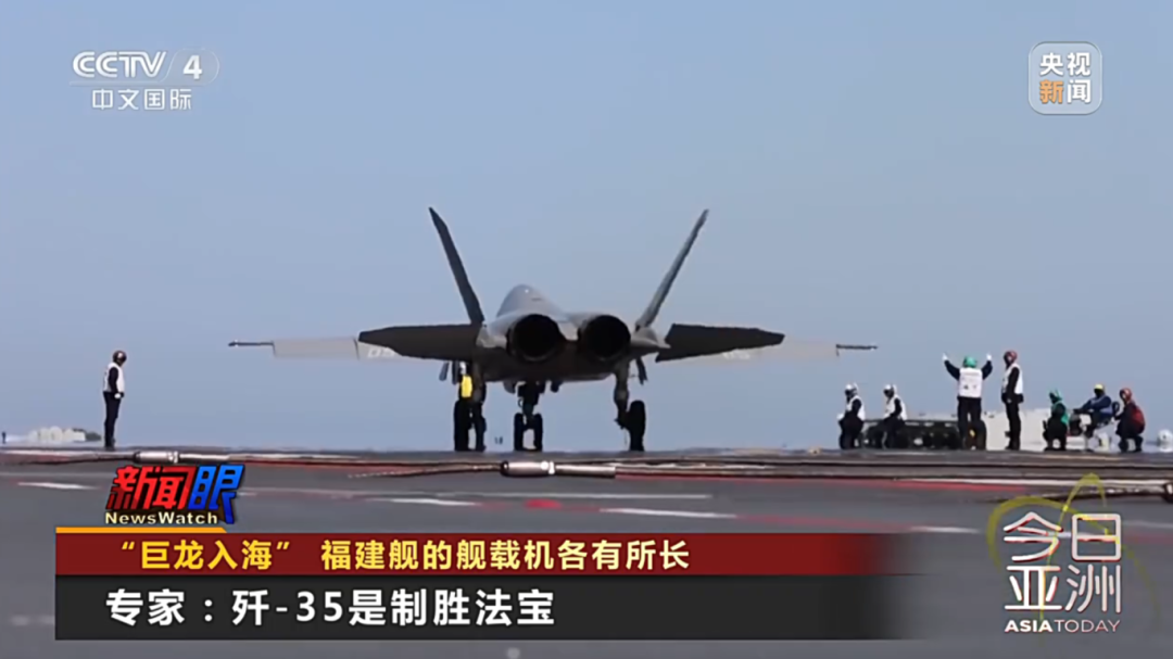 军事专家认为,歼-35是航母福建舰舰载机作战体系当中的一个制胜法宝。