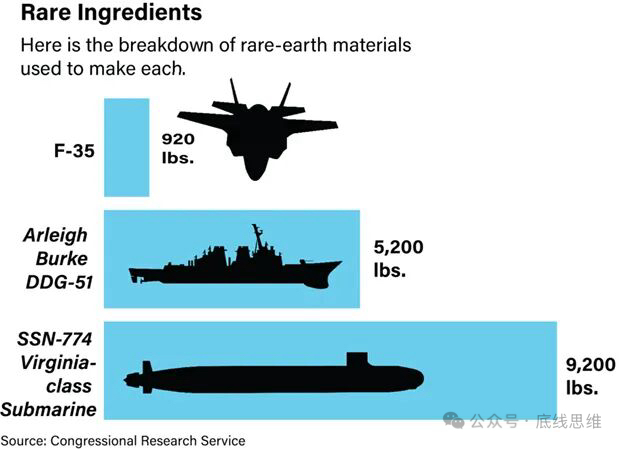 很快,美国就发现这样不行,比如造一架F-35,美国需要消耗920磅稀土,这导致全美对稀土的需求量很大。但中国在稀土产业链方面具有“垄断性”,中国稀土储量占世界40%多,中国稀土加工能力是世界最好的,加工量占世界90%以上。