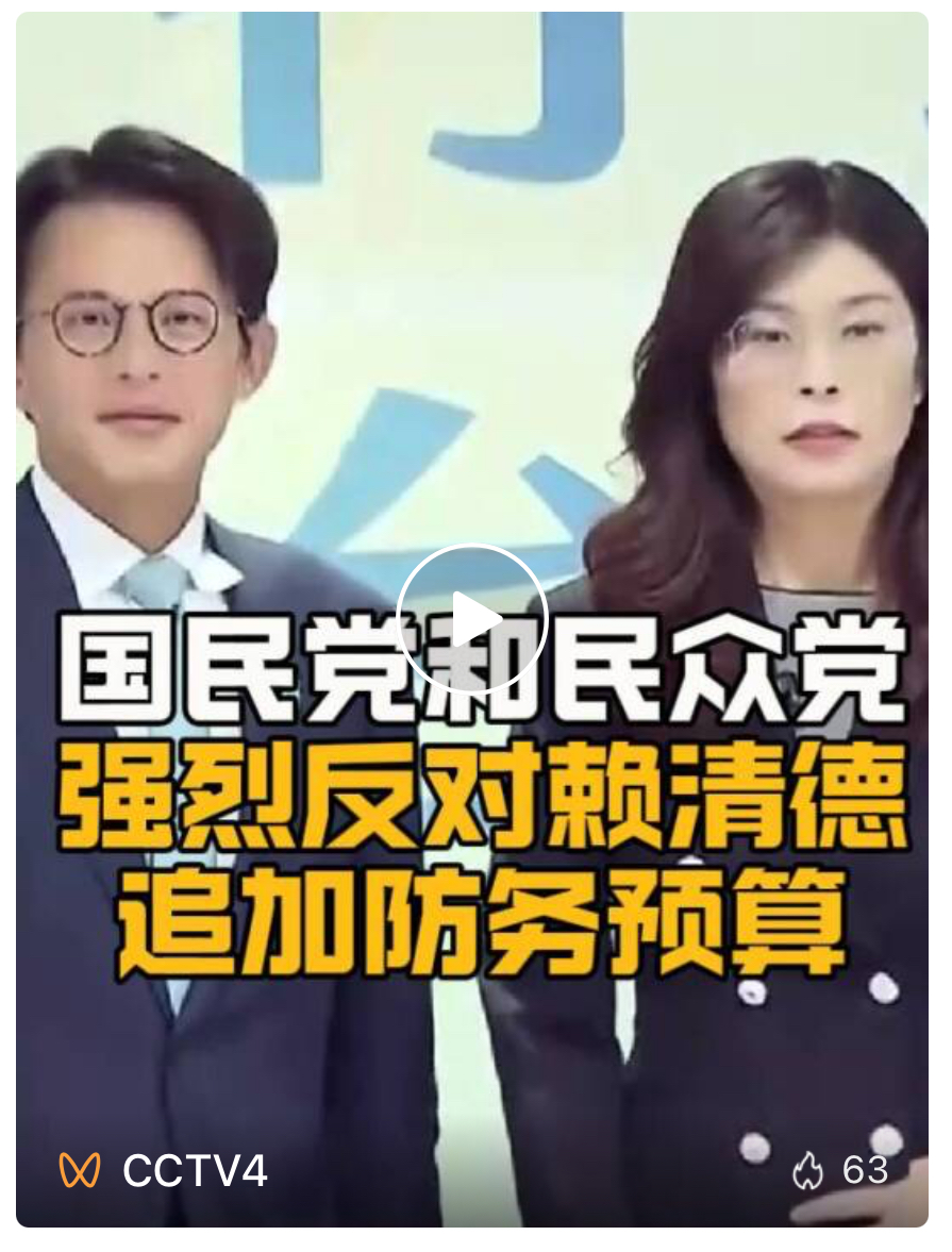 民众党方面也反对赖清德的做法。民众党主席黄国昌表示,台防务经费在明年一般预算中已创下9500亿新台币新高,赖清德当局却试图以“特别预算”之名追加军事采购费用,且具体内容始终未公开。