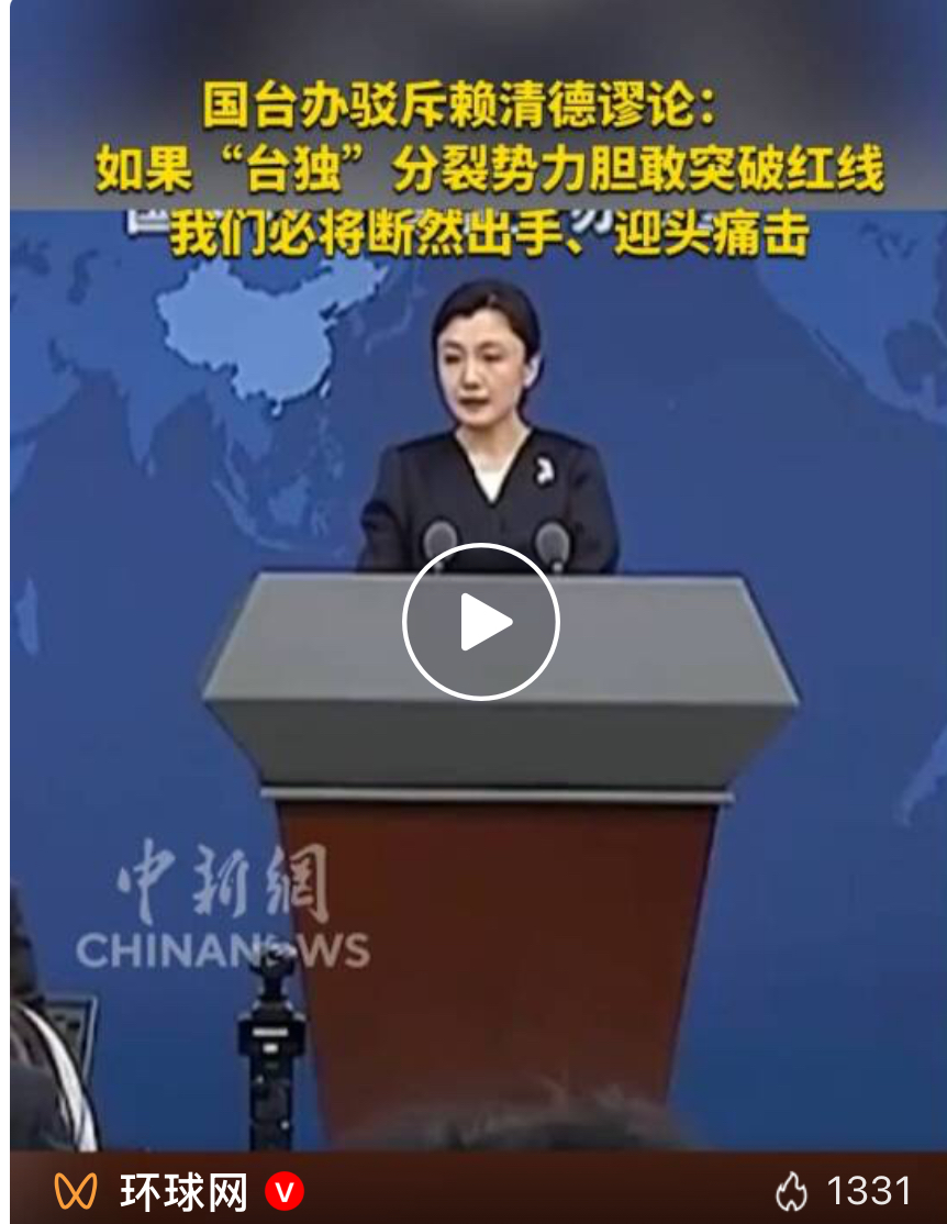 国台办驳斥赖清德言论:如果“台独”分裂势力胆敢突破红线,我们必将断然出手、迎头痛击