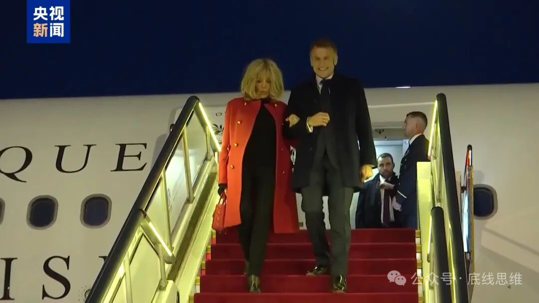 12月3日,法国总统马克龙抵达北京开始访华。 图自央视新闻