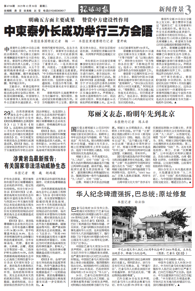 国民党主席郑丽文上任后何时访陆备受关注。12月29日,郑丽文接受采访时表示,盼明年上半年出访北京与华盛顿,将“先去北京”列为优先。据台湾联合新闻网29日报道,郑丽文当天表示,刚上任便规划明年上半年完成出访,是因下半年需投入辅选,时间有限因而优先选择北京。