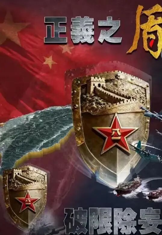 当然,对大陆而言,解决台湾问题,前提条件就是必须阻遏外部军事干涉企图。因此,这次东部战区各军兵种在台海展开的大规模军演,阻遏外部军事介入也是这次演练的重点科目之一。为此,参演部队的一部分兵力,在巴士海峡和宫古海峡进行布控。从东部战区发布的演习海报来看,两面刻有长城和八一军徽的盾牌,就卡在上述两道海峡。不止让美国运送售台武器的船只和运输机被迫原路返回,同时也粉碎了美海军核潜艇的潜入企图。