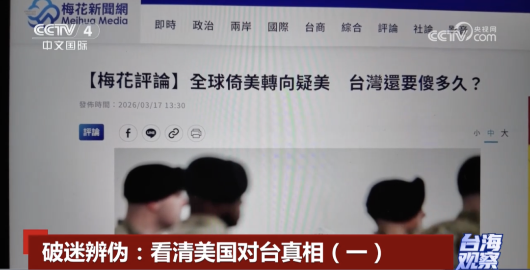 《全球倚美转向疑美 台湾还要傻多久?》这是最近一位台湾资深媒体人评论近期中东战事时使用的标题。在这篇文章中,作者直言,纵观全球对这场战争的反应,尤其攸关能源冲击经济的致命因素,更将催化“倚美论”的崩盘,但民进党当局依旧死抱美国大腿,从军购到半导体产业,持续沦为美国的提款机,却仍被美国列为贸易调查目标,简直“傻上加傻”。