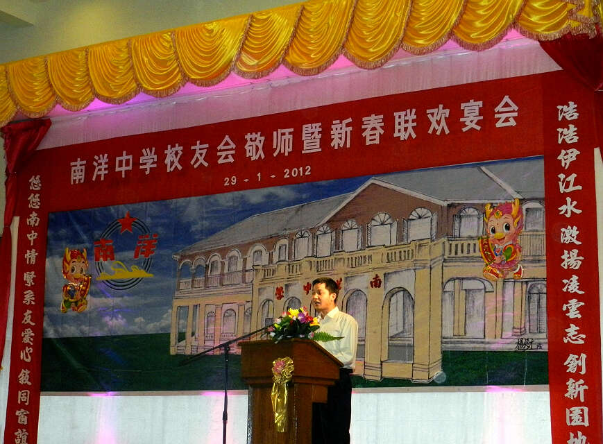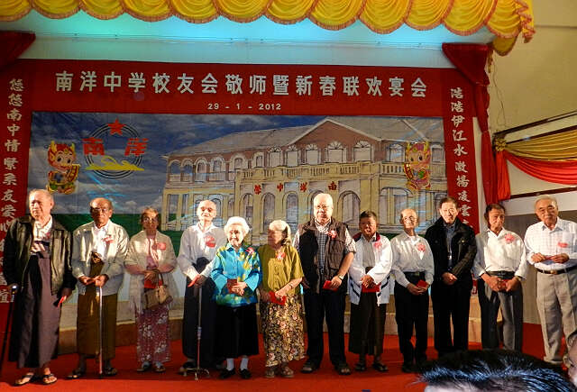 缅甸南洋中学校友会于2012年1月29日晚假座梅花皇宫大酒家举行敬师与春节联欢宴会。来自世界各地以及各行各业的校友们齐齐一堂,整个大厅熙熙攘攘、充满欢笑声,几十年同窗谊,此时此刻更显得温馨亲切。