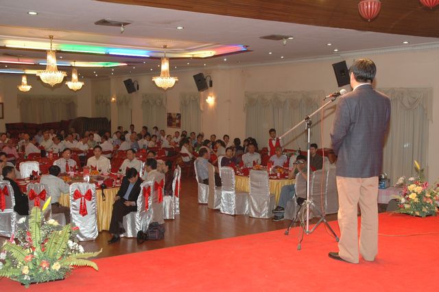 宴会开始后,本地著名歌星苗旺(林清忠)以卡拉OK演唱缅文歌曲,接着,歌友们纷纷一展歌喉,晚会气氛非常热闹。