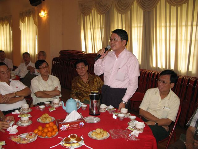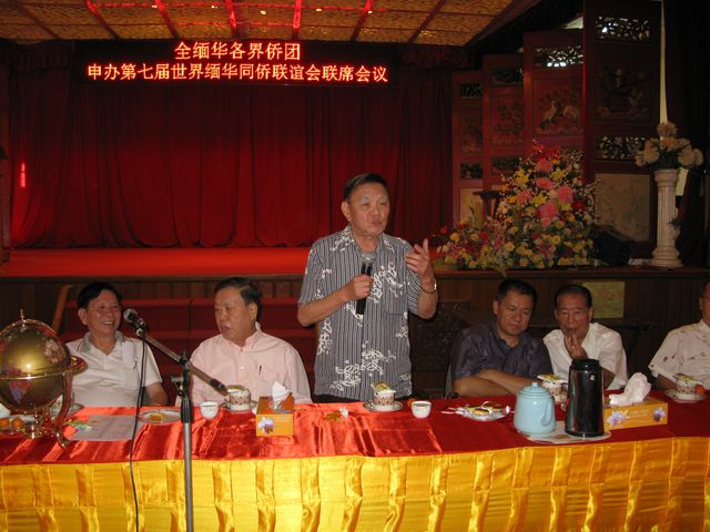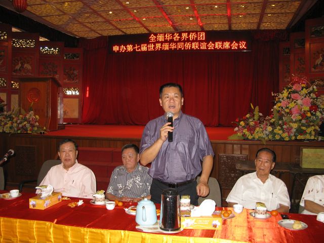 申办筹委会主任赖松生先生首先致辞,他首先回顾了去年七月全缅华各界侨团召开全体代表会议,一致主张申办在仰光举行第七届世界缅华同侨联谊会,去年十月在景德镇举行的同侨大会期间,仰光和曼德里的几位代表,经过几次讨论,终于决定接受2013年在仰光举办第七届世界缅华同侨联谊会。这一决定,得到组委会和世界各地缅华同侨的热烈反响。这几个月以来,缅甸民主进程加快,社会变化很大,外国游客和商家接二连三来缅旅游考察,许多大酒家大旅馆爆满,旅馆费也暴涨,由于这是一个盛大的集会,各地来的缅华同侨人数肯定众多,住宿也是一个大问题,希望大家共献谋策,多提意见,无论对的、不对的,赞成的、不赞成的,都可发表,畅所意言,才能集思广益。
