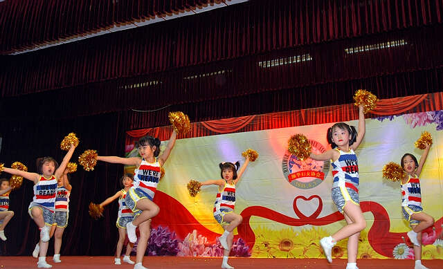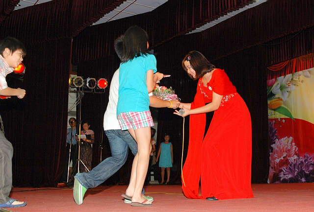 小朋友向姐姐献花