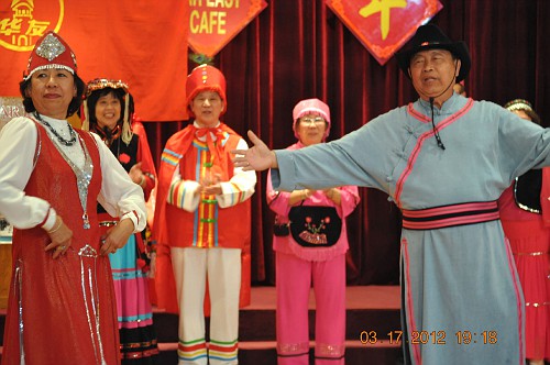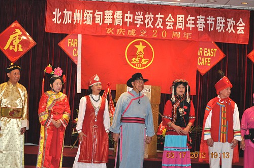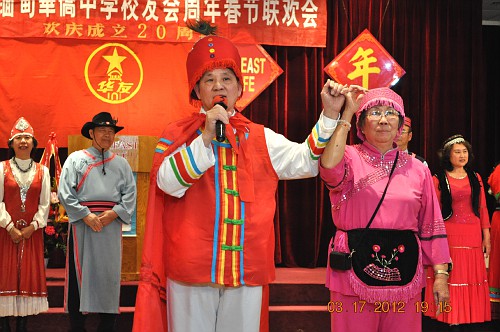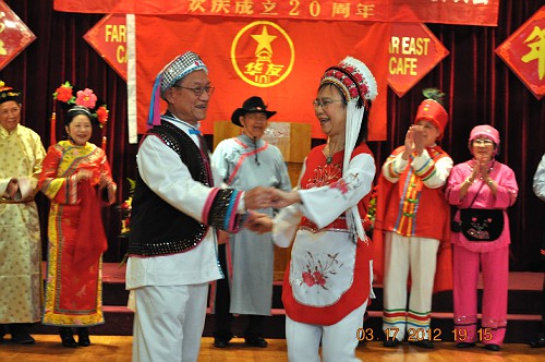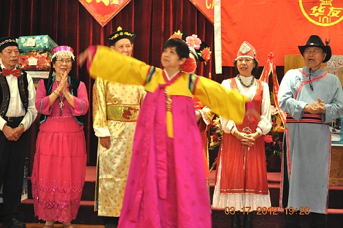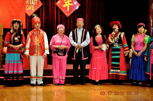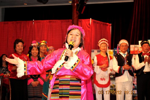 3月17日,晚会上,洛城华友穿上了色彩艳丽的各民族服装,齊齊上台向北加学友们拜年。藏族大爷当司仪;彝族叔叔及阿婶献贺词;白族阿哥寻找金花妹;新疆老伯及老伴摇头摆脑逗着玩;维吾尔大哥及大姐跳起爱情舞;满族格格和阿哥,你是风来我是沙,含情默默;蒙古老汉对着蒙古阿娘高唱情歌;景波姑娘揹着花箩绣葵花;欢乐的汉族兄弟挥舞着红绸而妹妹们忙着採茉莉;朝鲜小妹跳着阿里郎;藏族父女对歌逛新城;卓玛引吭高歌唱“天路”;涼山彝族大姐在彩霞中看金丝鸟……